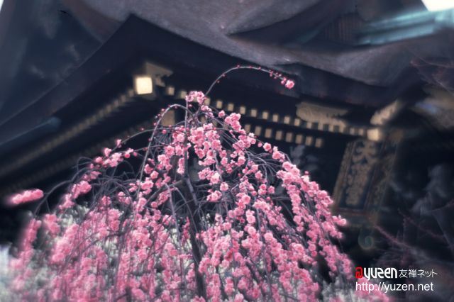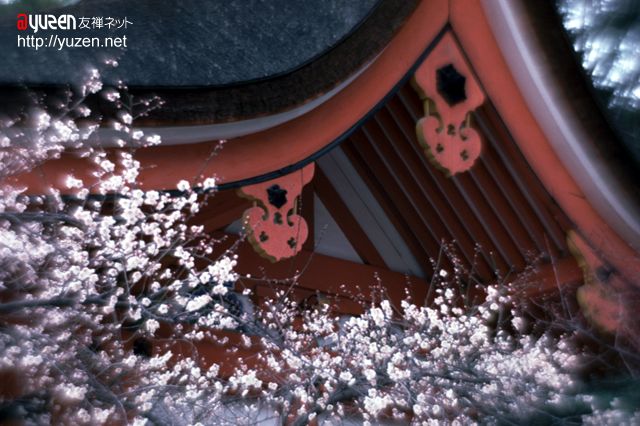 ここは京都一の梅の名所でもあります。道真公がこよなく梅を愛したということから、いたるところに梅の木が植えられています。境内には約500本、そして隣接の梅園には約2000本の梅の木があり、例年、見頃は2月下旬から3月の中旬にかけてです。道真公の命日にあたる2月25日には、梅花祭が催されます。地元の花街、上七軒(かみひちけん)の舞妓さんや芸妓さんたちの奉仕で野点のお茶席が持たれ、梅の香りとともに境内は華やかな雰囲気につつまれます。