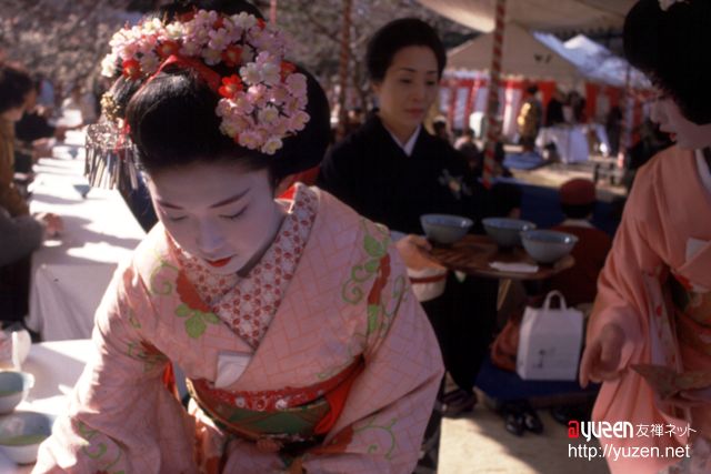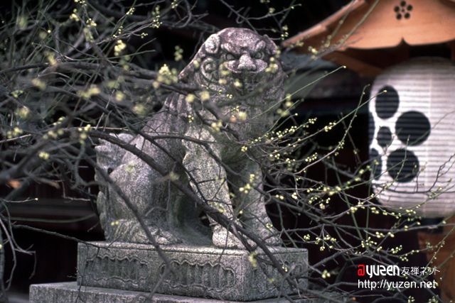 ここは京都一の梅の名所でもあります。道真公がこよなく梅を愛したということから、いたるところに梅の木が植えられています。境内には約500本、そして隣接の梅園には約2000本の梅の木があり、例年、見頃は2月下旬から3月の中旬にかけてです。道真公の命日にあたる2月25日には、梅花祭が催されます。地元の花街、上七軒(かみひちけん)の舞妓さんや芸妓さんたちの奉仕で野点のお茶席が持たれ、梅の香りとともに境内は華やかな雰囲気につつまれます。