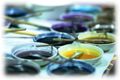 挿友禅の工程は、友禅染のなかでももっとも華やかな工程です。糸目糊で防染した内側の部分を彩色していく工程ですが、同じ模様や図柄でも配色によってまったく違った印象の着物に仕上がりますので、それだけに友禅職人の色彩感覚が仕上がりに大きく影響します。