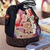 ちょっと着物でお散歩 古布イメージのちりめん布を使った丸巾着です。カジュアルな着物でちょっとお出かけというときに、お薦めの巾着です。3色ご用意しました。なお、柄の出方は、布の裁断位置によって個々の商品で少しずつ異なりますので、ご了承ください。